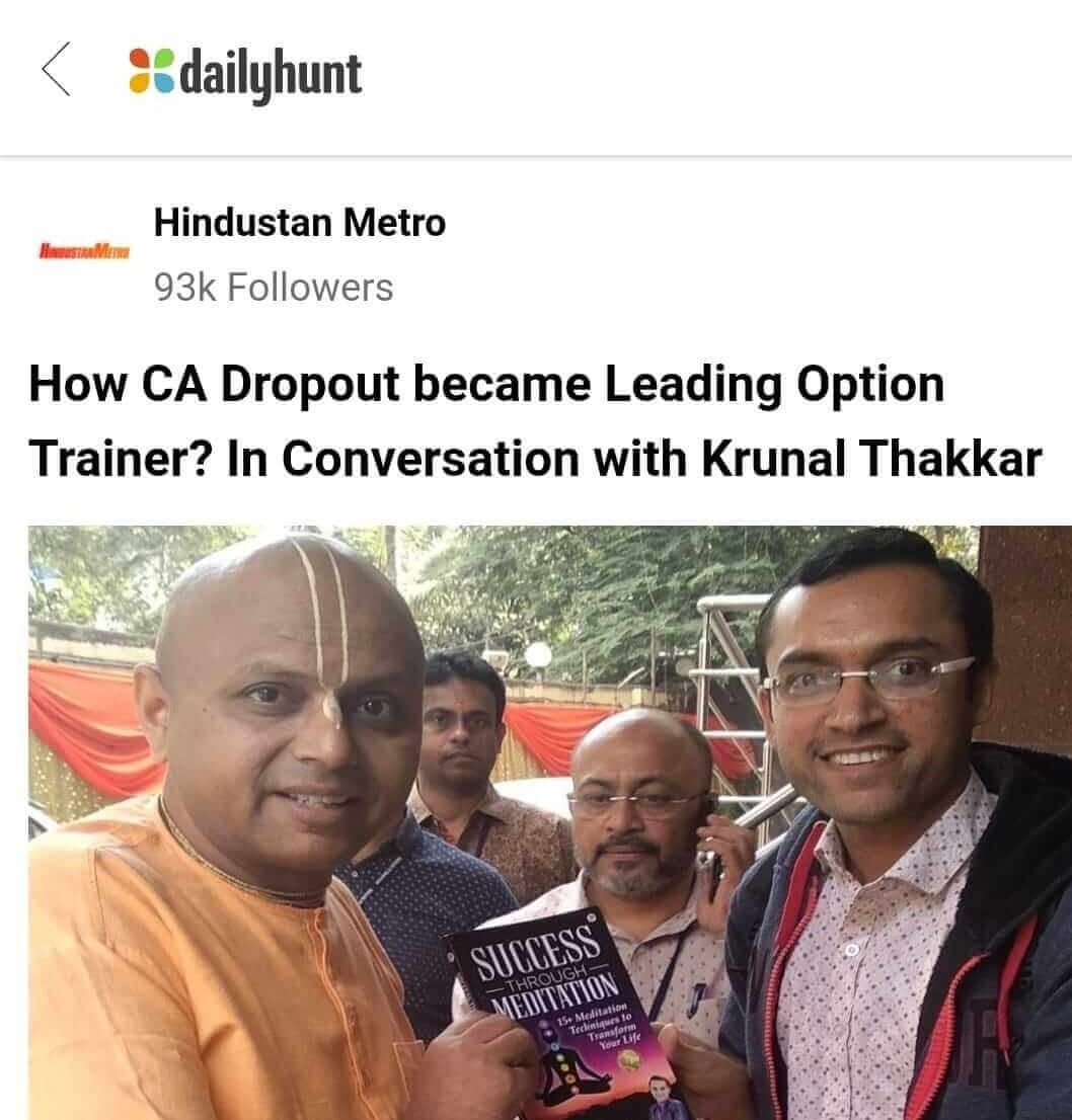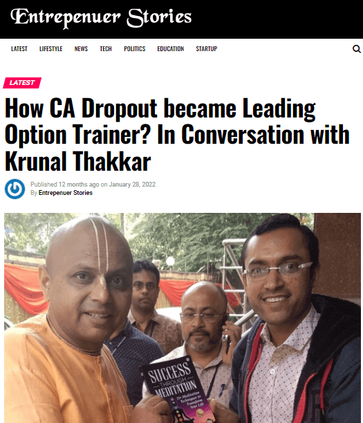Krunal Thakkar is a mentor, teacher, trainer and author. Krunal is better known as KT in the industry of educators and trading. Krunal Thakkar or KT is the author of the Bestseller ‘Success Through Meditation’ His book has received many recognitions and appreciation. The modern monk, Shri Gaur Gopal Das Prabhu, from ISKCON Community and Shri Rakeshbahi, founder of Shrimad Rajchandra Mission has applauded Krunal for his book and his deeds. Krunal holds various records to his names such as the Assam Book of Record, the India Book of Record and the Asia Book of Record. Not just a known author but as a mentor and a teacher Krunal offers various courses, Options Trading is one of them.